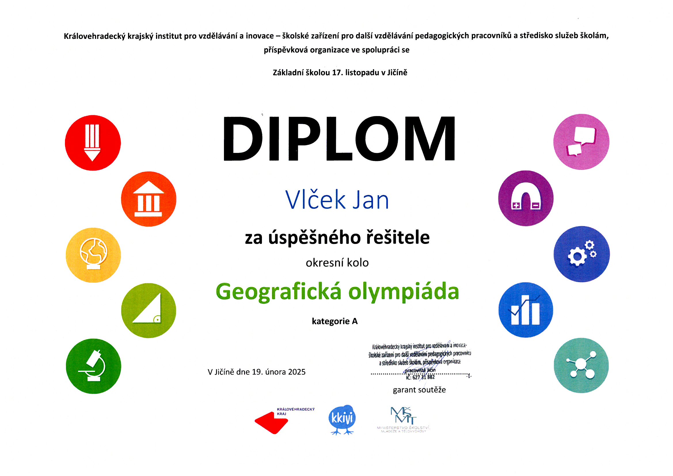 Geografická olympiáda - Jan Janatka - úspěšný řešitel.jpg