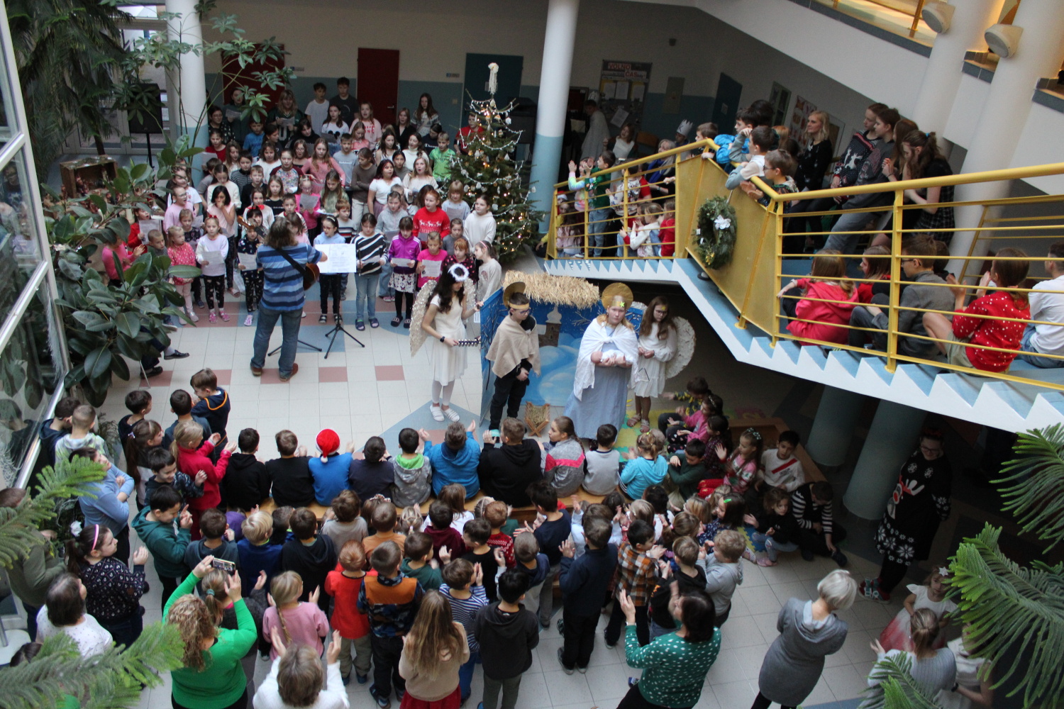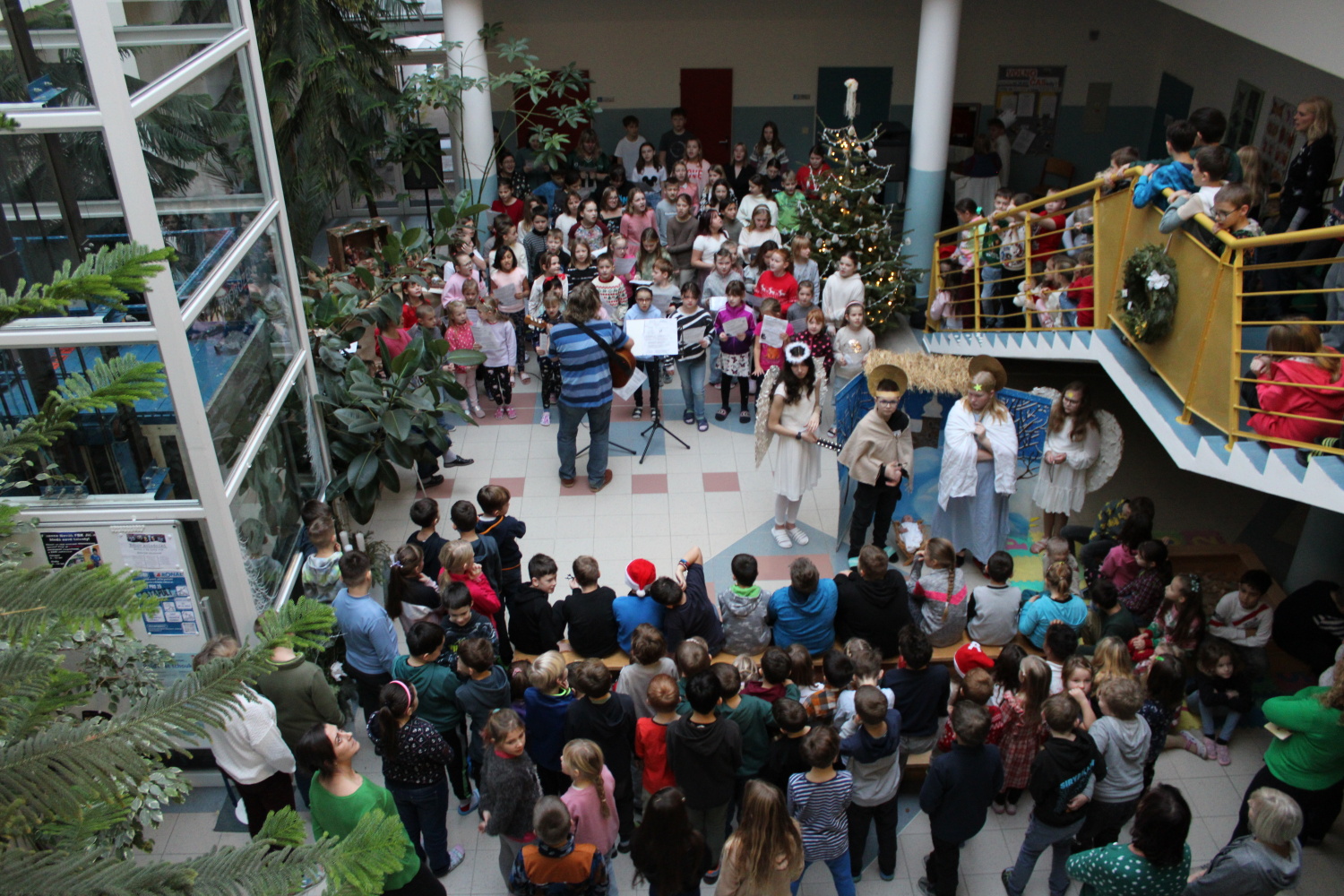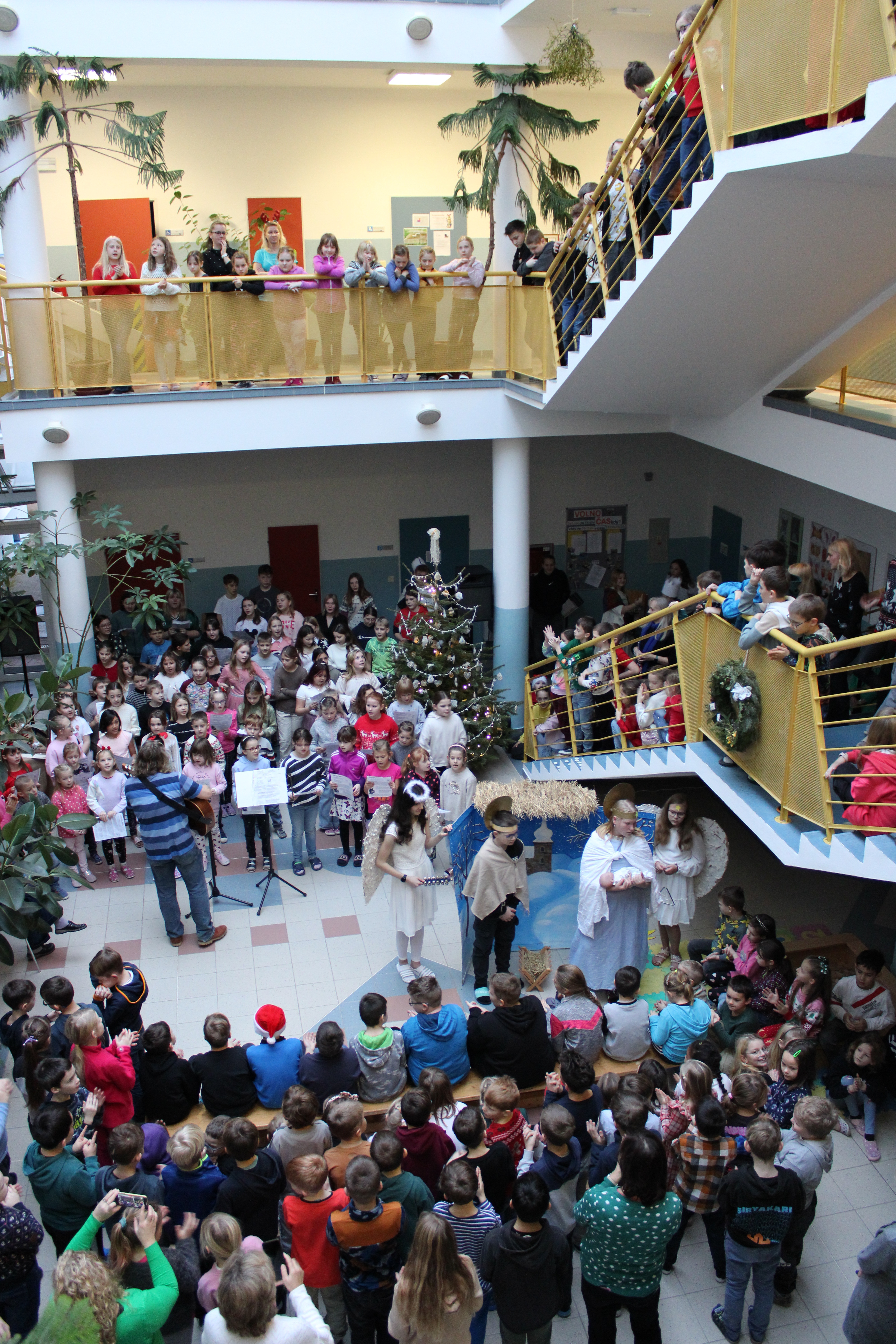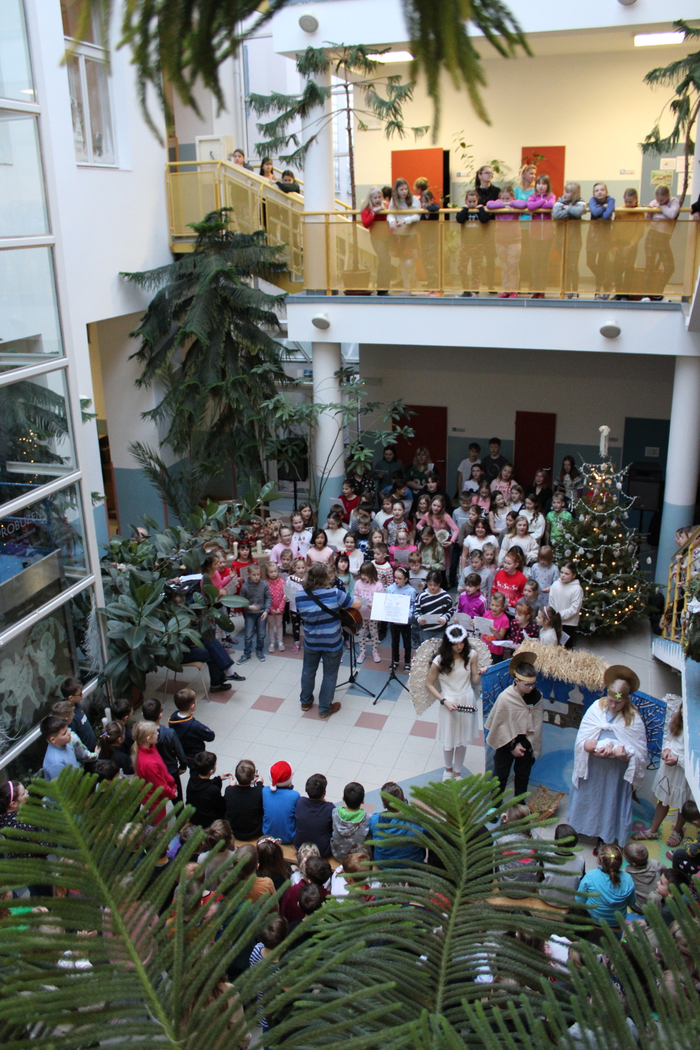 Vánoční zpívání koled v atriu školy