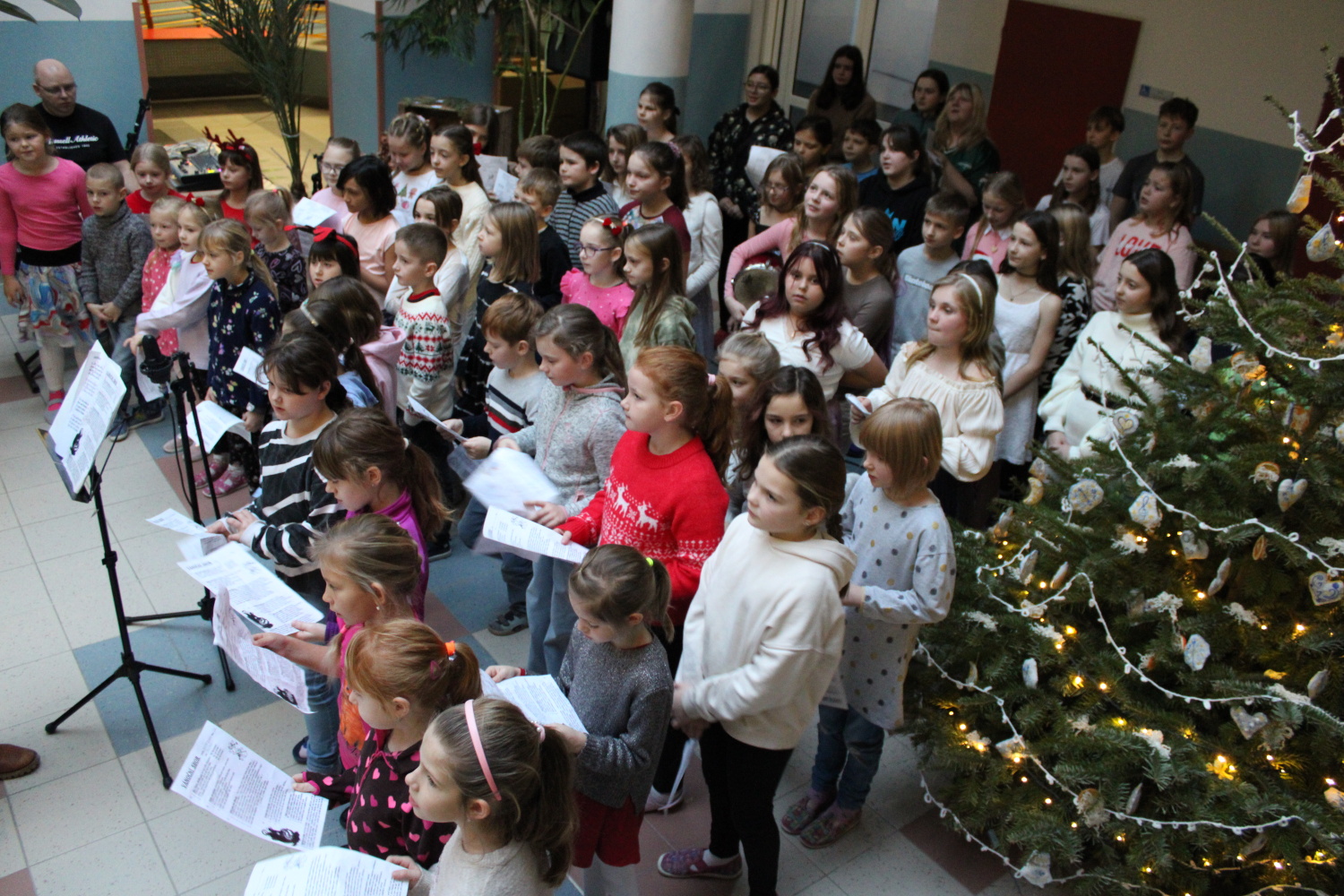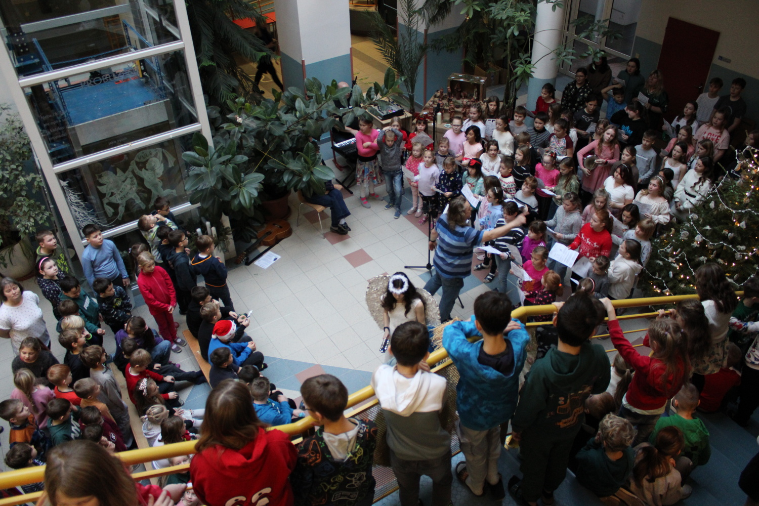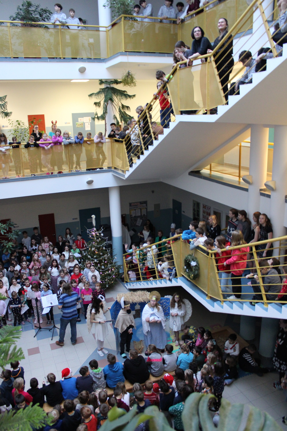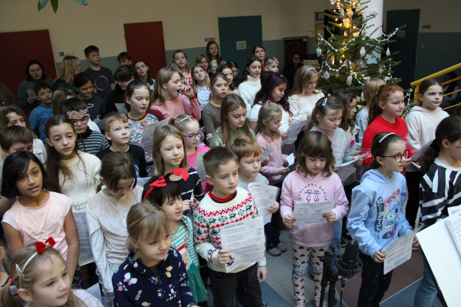 Vánoční zpívání koled v atriu školy