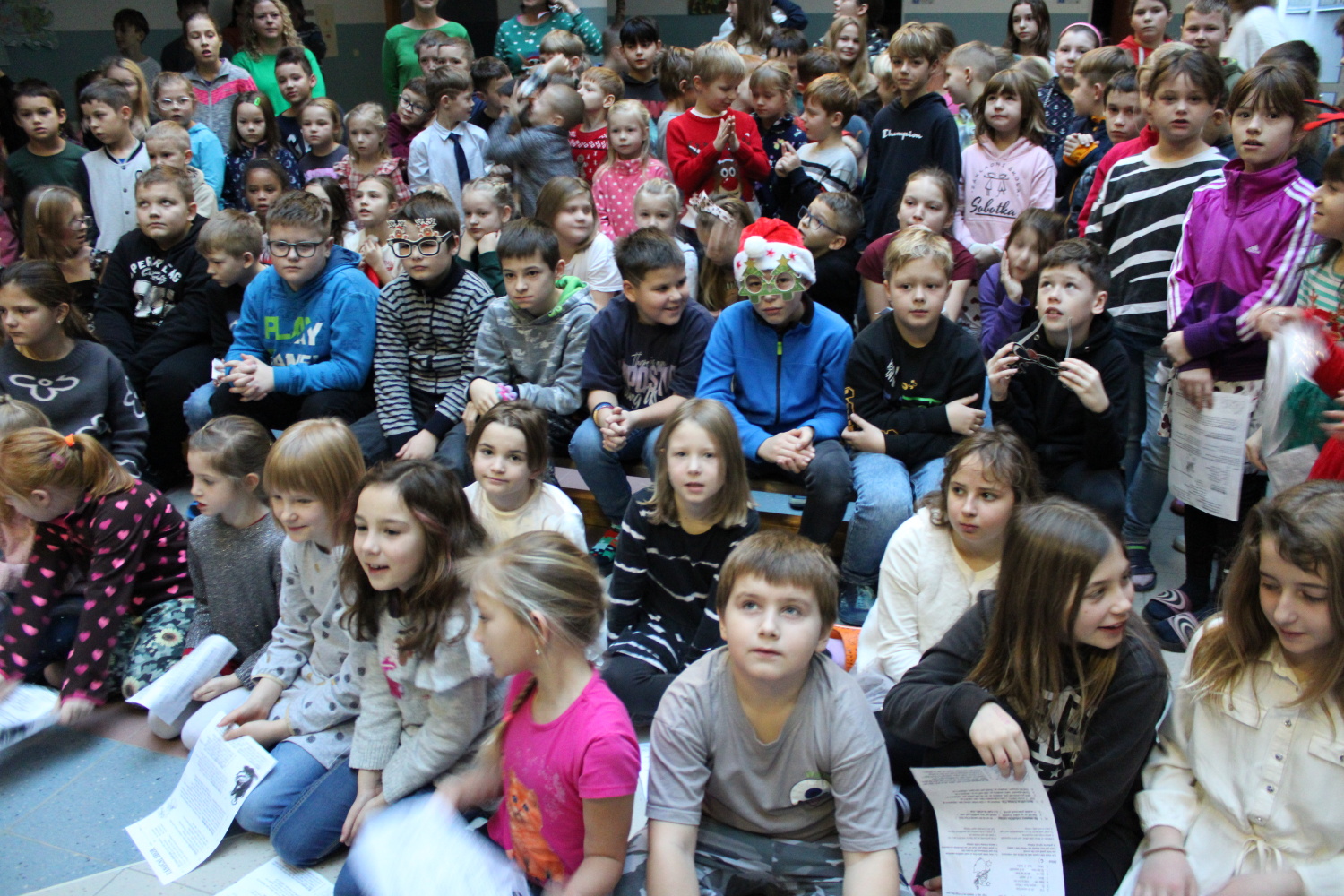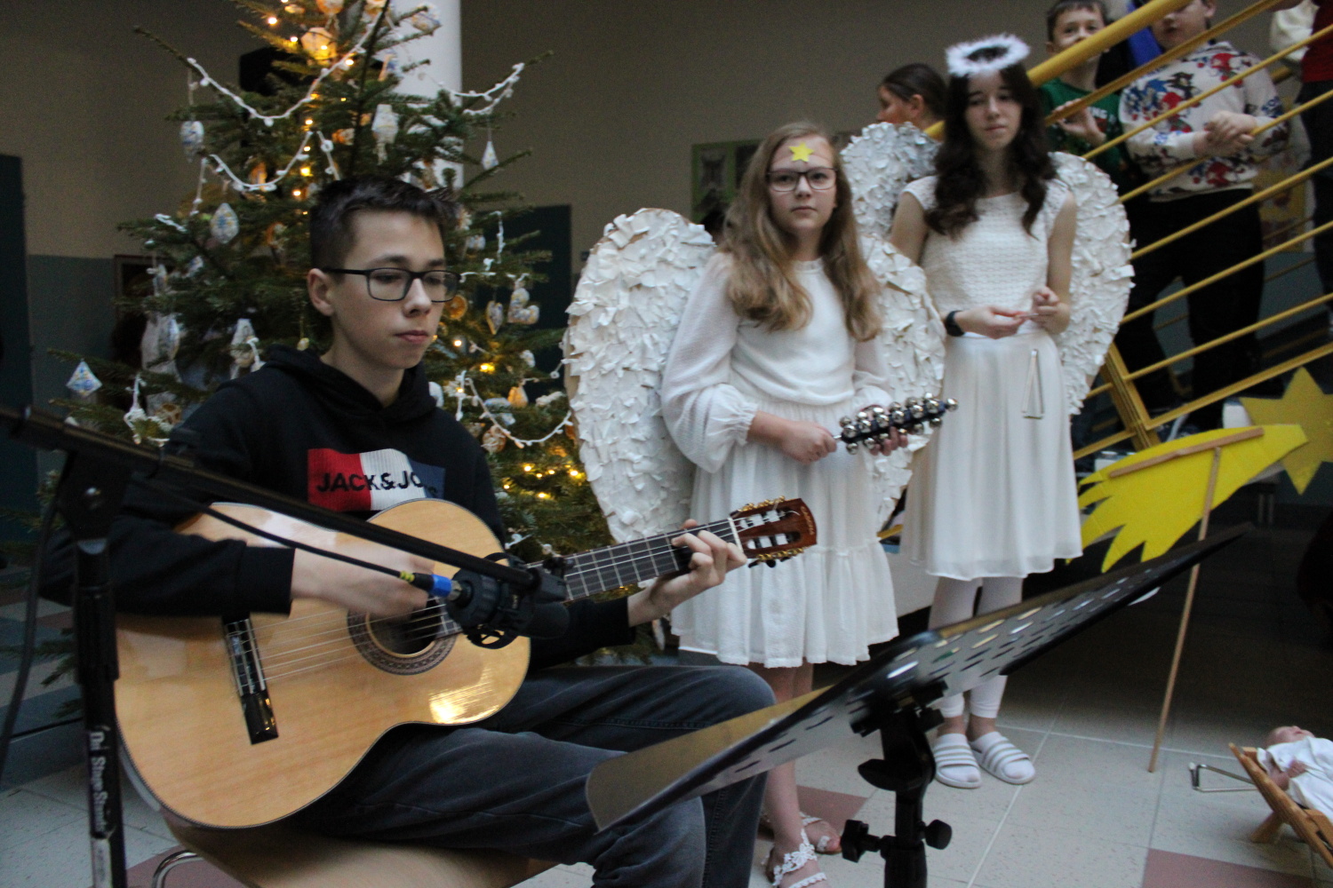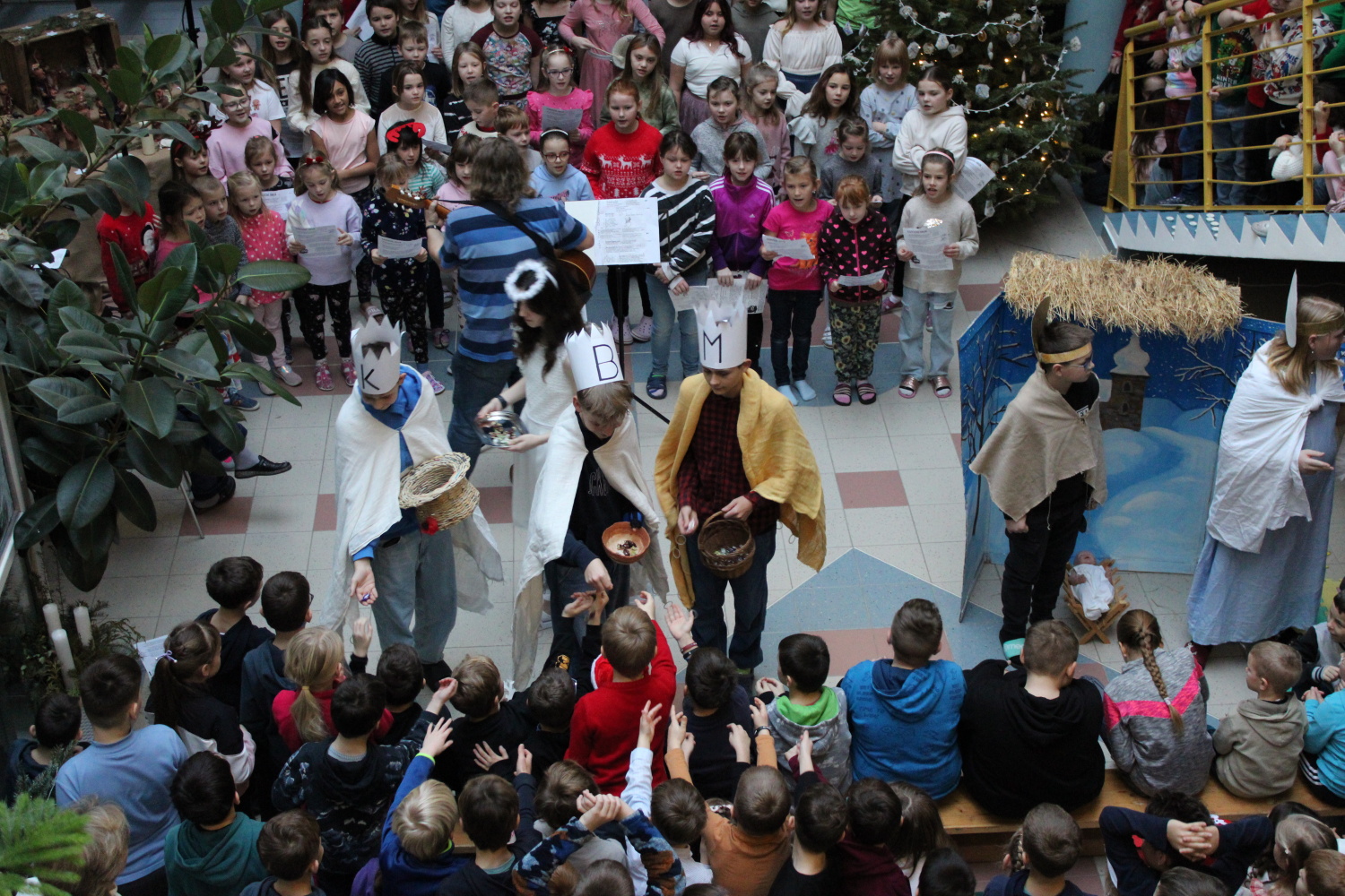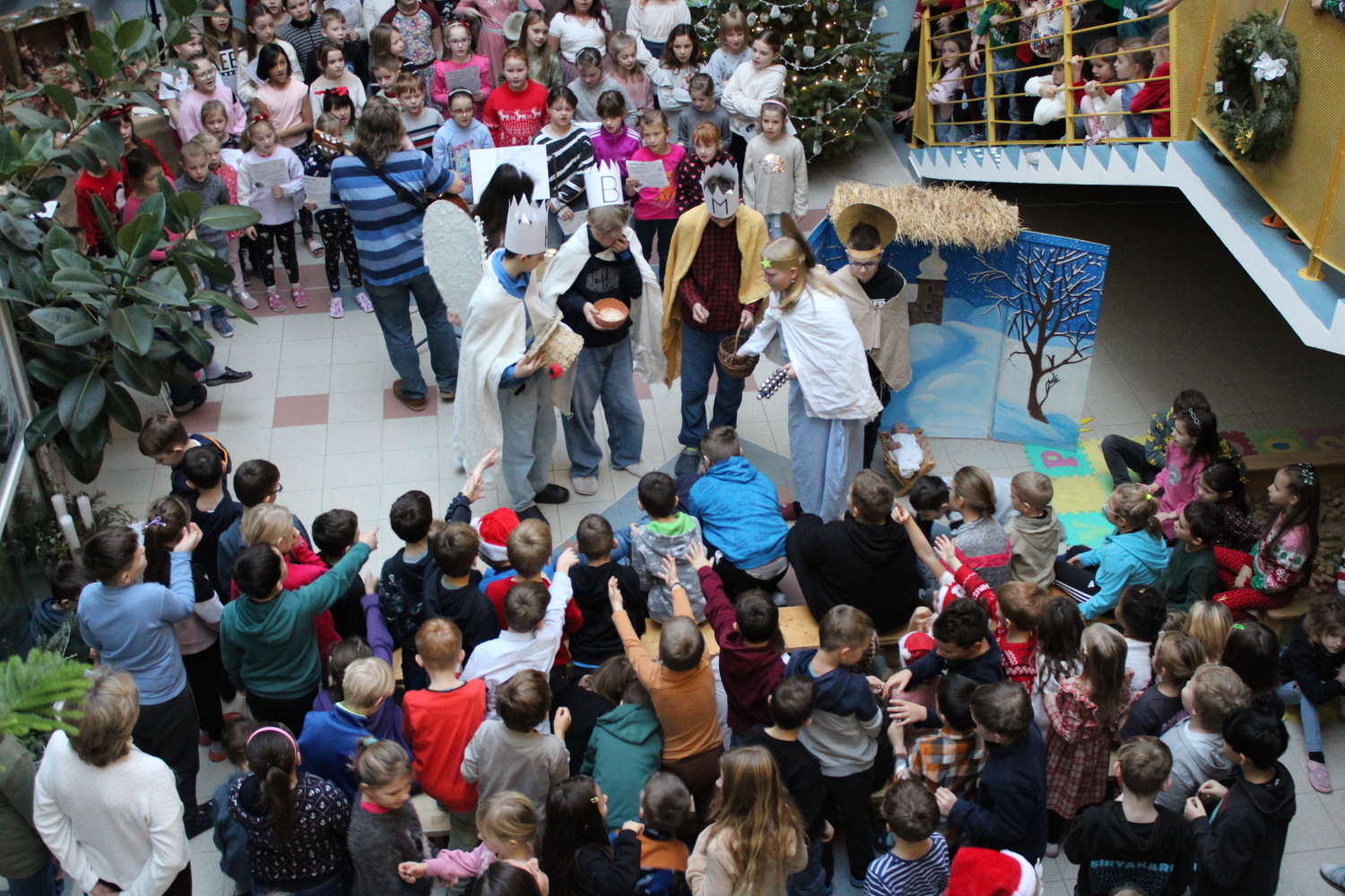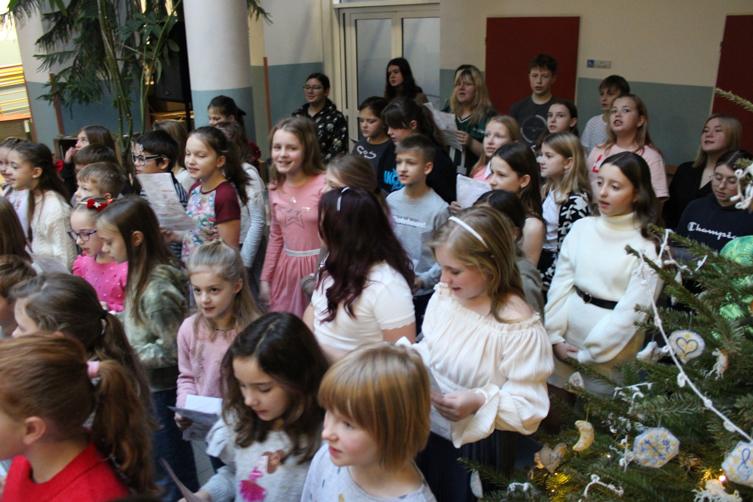 Vánoční zpívání koled v atriu školy