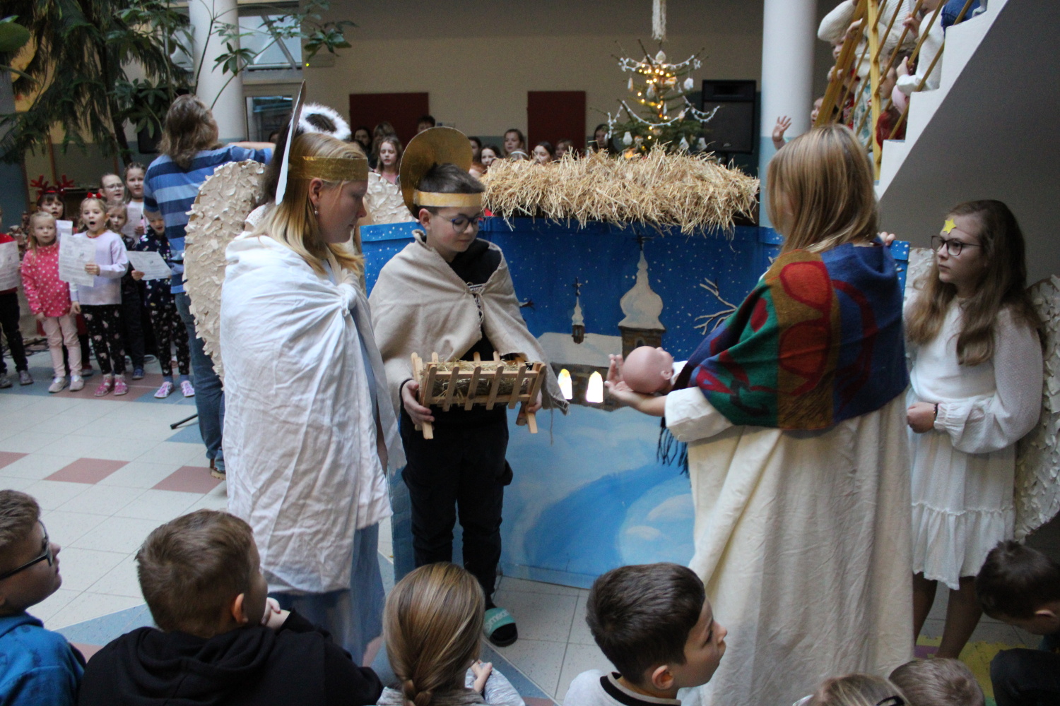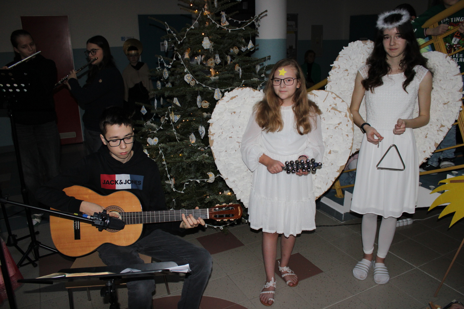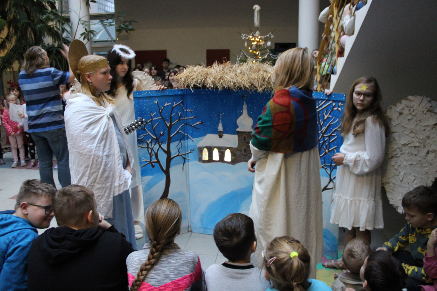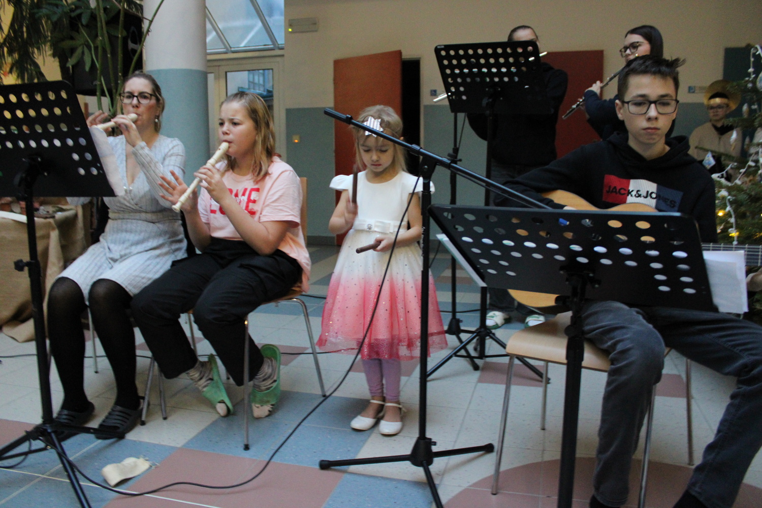Vánoční zpívání koled v atriu školy