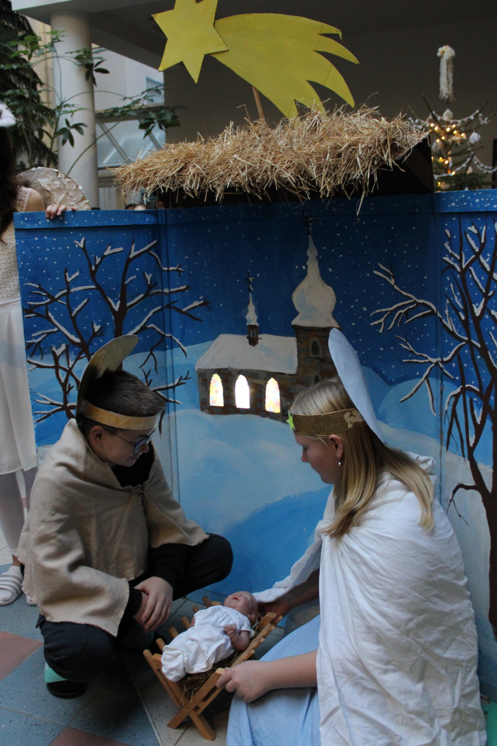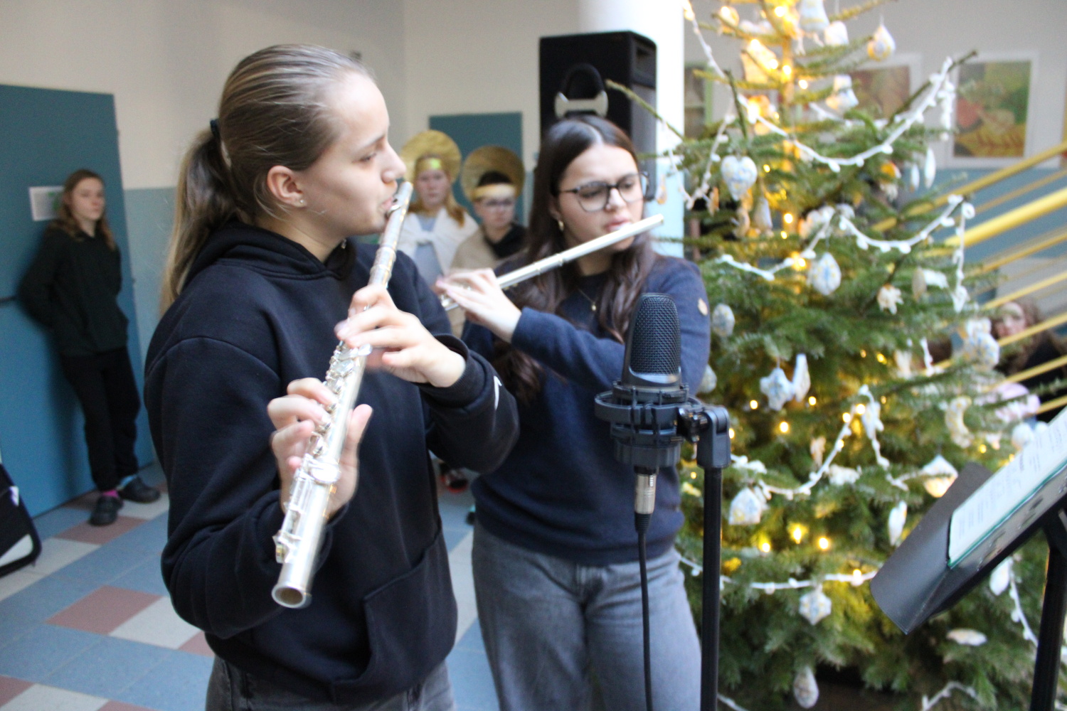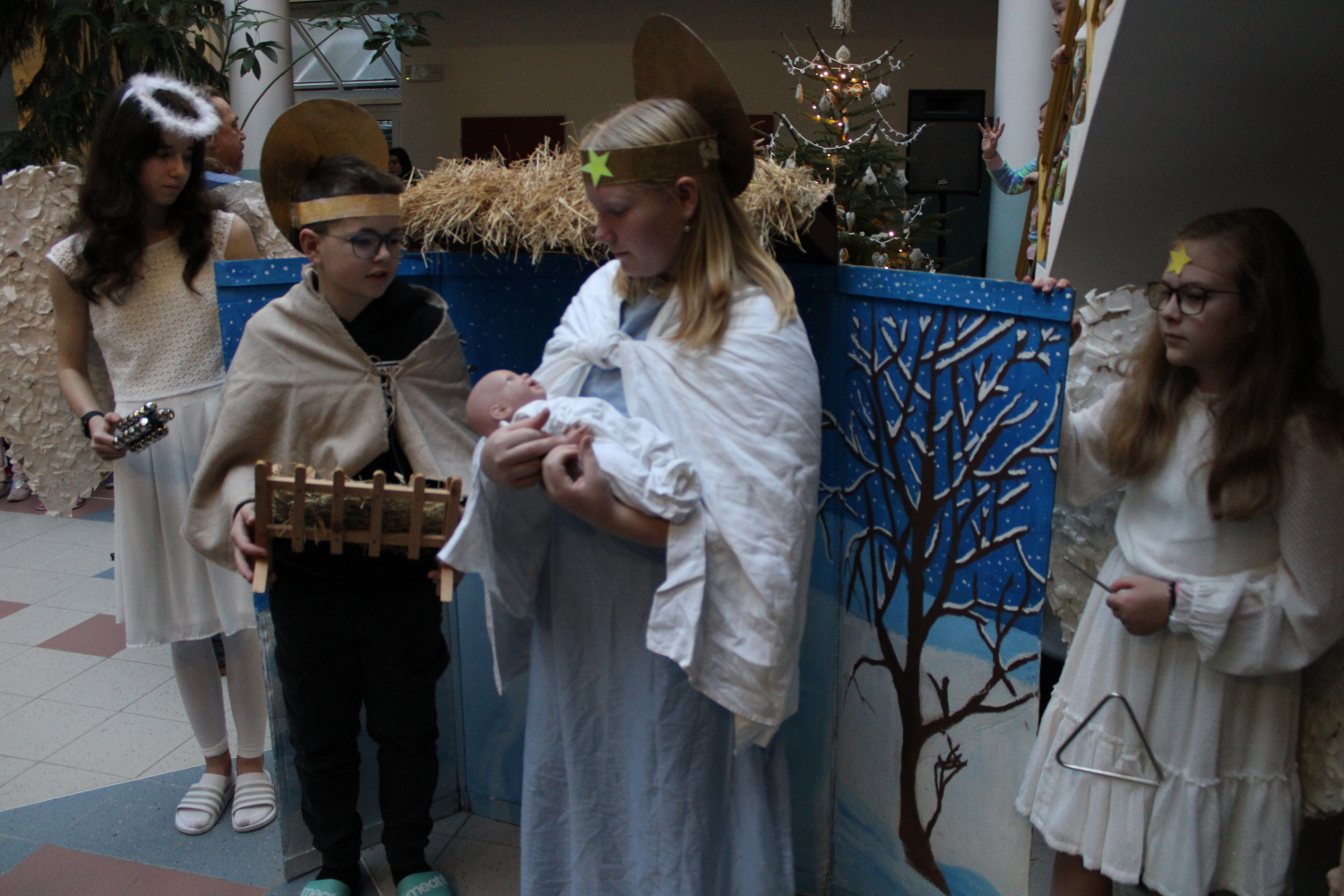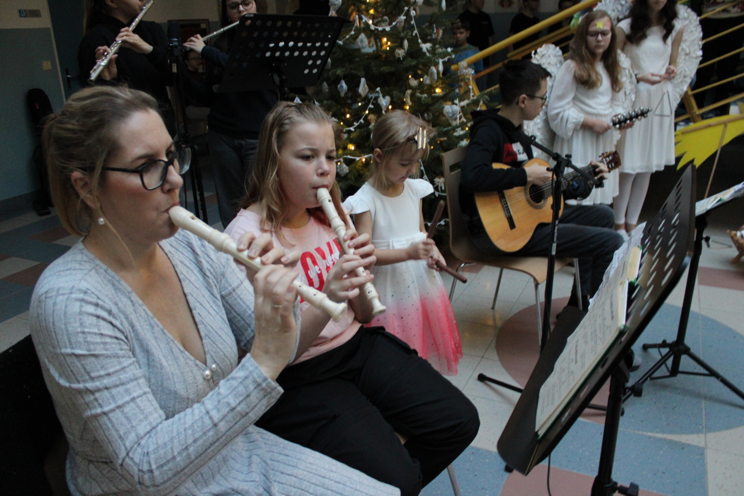 Vánoční zpívání koled v atriu školy